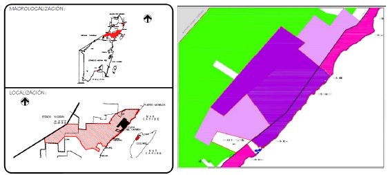 La zona verde representa a la reserva natural del sitio, del cual de manera creciente ha ido minimizándose por la construcción de espacios turísticos, espacios de diversos enfoques comerciales y el establecimiento de zonas habitacionales. La zona morada representa el aprovechamiento urbano, la cual hace constar del rápido crecimiento de la ciudad, del año 2011 a la mitad del año 2018, se ha tenido un crecimiento de 44, 740 habitantes. Mientras que la zona de coloreado rosa, representa el crecimiento urbano y finalmente la zona color rosa mexicano, representa el espacio turístico, de tal forma se observa el orden jerárquico en la ciudad.