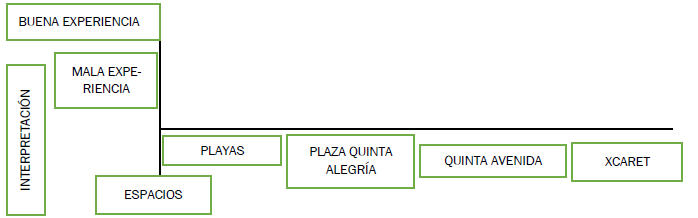 De las 15 personas entrevistadas, ocho hicieron mención de una vivencia en el espacio a través de la cual se expresa una experiencia de frontera entre una sociedad y otra, por lo cual, se puede llegar a una aproximación en donde se perciba la problemática. El alza de precios para los residentes es un elemento importante en el uso de un producto turístico al ser un tanto inasequible para ellos. Además identifican la zona turística con más cuidado no solo en el aspecto de seguridad, sino en la imagen.