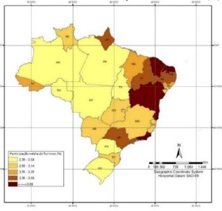 destaque para Rio Grande do Norte, Ceará e Bahia. O estado do Rio de Janeiro também aparece em posição de destaque, que corrobora a importância do turismo de sol e praia para o país.