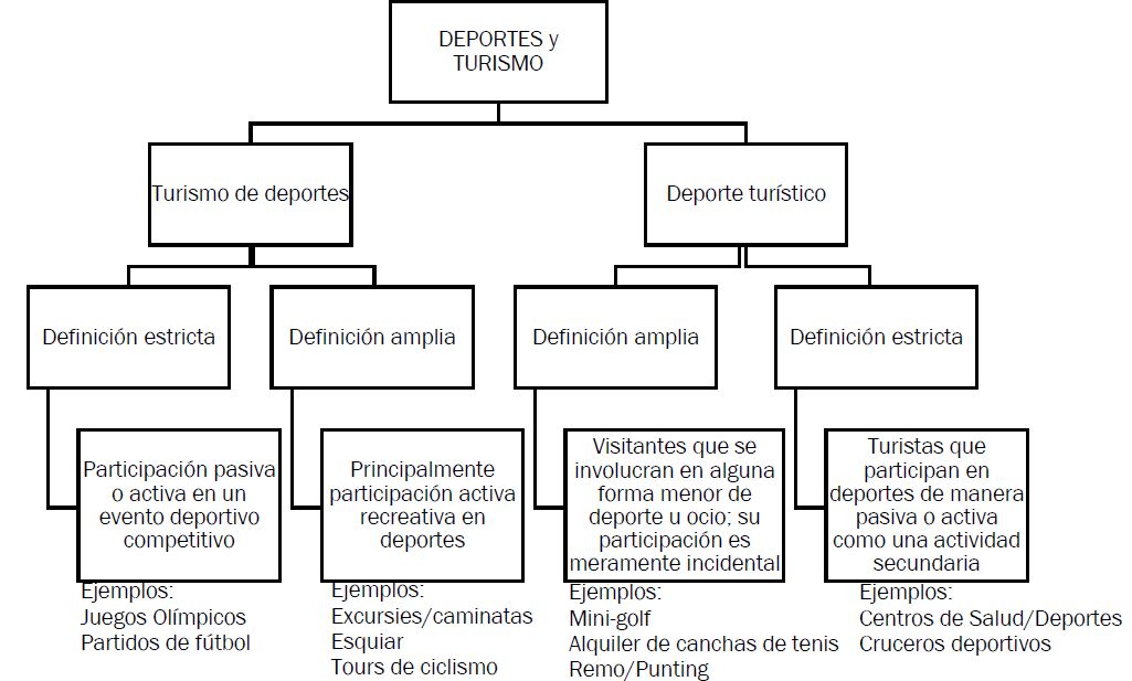 En particular, se considera turismo deportivo como toda forma de participación, activa o pasiva, en actividades deportivas, sea casual u organizada, con motivos comerciales o no, y que implica viajar lejos de la residencia y lugar de trabajo Standeven y De Knop (1999, citados en OMT, 2016). También se incluye a aquel turismo que involucra la asistencia del visitante como espectador o participante en eventos deportivos que tienen lugar fuera de su lugar de residencia habitual (Tajzadeh-Namin y Niknam, 2012). Cabe destacar que, o bien el turismo, o bien el deporte, pueden representar la motivación dominante del viaje (Ritchie y Adair, 2004). Vinculado con esta conceptualización, Gammon y Robinson (2003) se refieren al consumidor de turismo y deportes, distinguiendo entre aquellos que participan de instancias deportivas como motivación principal para desplazarse fuera de su lugar de residencia habitual, y quienes incidentalmente se suman a actividades deportivas como parte de su viaje (Figura 1). Con el énfasis puesto en la captación de mercados, Pouder, Clarka y Fenichc (2018) establecen tres categorías dentro de los deportes: tradicional, de nicho y emergente.