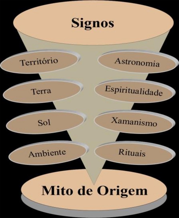 Diante disso, elencamos os signos dos povos em estudo, pautado no mito de origem, base da cultura, e, a partir disso, seccionamos em: rituais, xamanismo, espiritualidade, astronomia, ambiente, Sol, Terra e territórios, conforme a figura 6, a seguir. Esses elementos sígnicos fazem parte da vida diária dos povos Sateré-Mawé e Sámi numa relação intersemiótica e intersectiva nas vivências (Peirce, 2017).