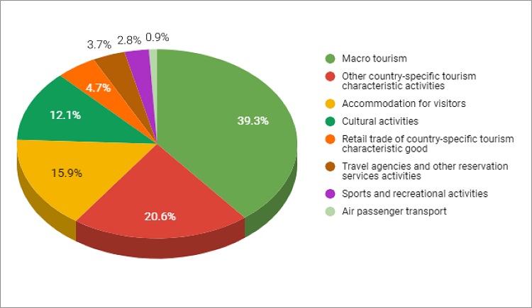 The other sectors contemplated were in the following positions: Cultural Activities in fourth with 12.1%; Retail Trade of Country-Specific Tourism Characteristic Goods in fifth with 4.7%; in sixth Travel Agencies and Other Reservation Services Activities, representing 3.7% of the researches; in seventh Sports and Recreational Activities with 2.8%; Air Passenger Transport in eighth, involving 0.9% of the articles.