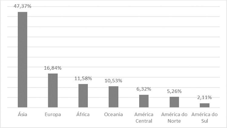 No caso da América do Sul, que representa apenas 2,11%, dos estudos aqui analisados, ainda temos pouco conhecimento sobre a dinâmica da demanda turística na região (Moura & Montini, 2010, Tavares & Leitão, 2017).