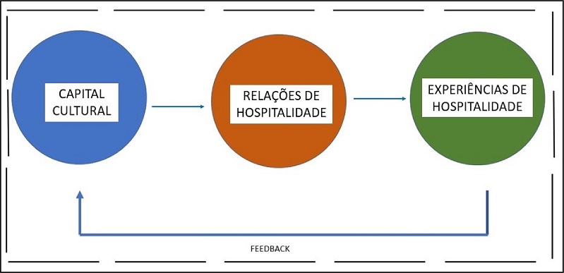 Já Mendes, Cavenaghi e Marques (2021) consideram a comunidade local como ponto central para discutir sobre a hospitalidade em espaços turísticos. Baseando-se na Teoria de Sistema Social de Niklas Luhmann, defendem que o capital cultural da comunidade local precisa ser reconhecido e valorizado, antes que ela esteja preparada para receber visitantes em seu espaço de morada. Esse sentimento, numa perspectiva autopoiética, irá provocar mudanças internas que possibilitarão o autorreconhecimento da comunidade como cidadã e responsável pela localidade. Assim, relações de hospitalidade serão estabelecidas, aspecto essencial para a efetivação das experiências de hospitalidade, o que pode se tornar um diferencial para o destino turístico (figura 3).