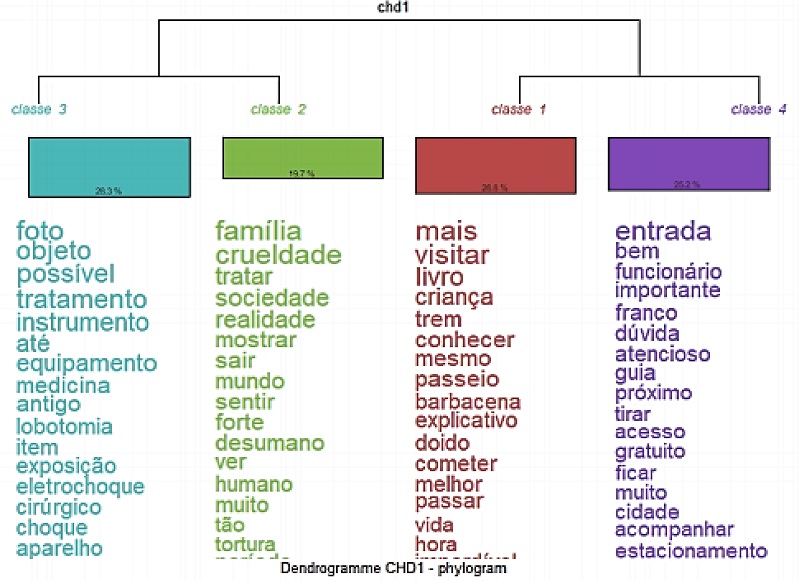 As Classes 2 e 3, denominadas respectivamente como Reflexões e Acervo em Exposição, expressam a opinião dos visitantes no âmbito do fato histórico ou dos objetos do acervo que auxiliam na conscientização sobre o tema. Os comentários da Classe 2 exprimem o incômodo dos visitantes com relação aos familiares das vítimas e sociedade pela exclusão destes indivíduos. A classe 3 agrupa comentários que afirmam que os objetos em exposição são agentes transformadores dos visitantes e facilitam a compreensão sobre os métodos de tratamentos das doenças mentais adotados na época em que o hospital esteve ativo.
