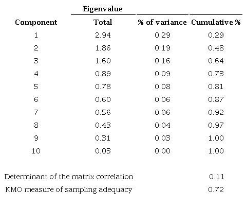 The third step is to decide whether to rotate the factor loadings matrix or not. Since factor loadings show the correlation between individual variables and the components, we decided to rotate the loadings matrix, aiming to make most component loadings small while only a few components loadings large in absolute value. We used the varimax rotation9 to get a better interpretation of the PCA results, since our goal is to identify which set of individual variables mostly define a single component (Table A.4).