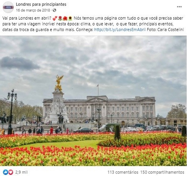 Os produtores de conteúdo sobre turismo entrevistados na pesquisa também foram unânimes em afirmar que as pessoas procuram, cada vez mais, conteúdos organizados de maneira prática e informações rápidas, do tipo “O que fazer em Londres em três dias”, “Melhores Museus para visitar em Paris”, “Onde comer bacalhau em Lisboa” (Xiang e Gretzel, 2010). As responsáveis pelas páginas “Londres para Principiantes” e “Aprendiz de Viajante” comentaram sobre mensagens recebidas de leitores decepcionados por não terem conseguido cumprir o roteiro sugerido por elas em suas páginas. Para elas, está claro que o consumo das imagens e das legendas com dicas precisas, prevalece sobre o consumo da informação mais completa, o que ajudaria a explicar a migração dos leitores de blogs para as redes sociais. Isto pode ser observado em duas postagens que estão entre as mais curtidas, comentadas e compartilhadas pelos seguidores dos perfis “Conexão Paris” e “Londres para Principiantes” no Facebook (figuras 2 e 3), nos anos de 2017 e 2018, respectivamente. Ambas são compostas por listas - o que levar, o que fazer, ideias de roteiro - nas duas capitais mais visitadas da Europa, Paris e Londres.