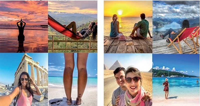 Paisagens deslumbrantes, um belo pôr do sol, um prato apetitoso, os pés na água cristalina, o corpo suspenso balançando em uma rede, a fotografia emoldurada pela janela de um avião, uma selfie em frente a um monumento conhecido, são imagens que se repetem, como um mantra, nas redes sociais dos viajantes. No Instagram “Viajando com Gabi” encontramos algumas dessas imagens que podem ser facilmente comparadas às postadas no Instagram do “Viajo Logo Existo”. Mais do que a venda de um estilo de vida e da viagem como um produto capaz de proporcionar momentos semelhantes aos desfrutados e compartilhados por esses viajantes, essas fotografias e os textos curtos que as acompanham, nos ensinam diferentes maneiras de otimizar o tempo e viajar pelo mundo: aonde ir, o que ver e o que fazer.