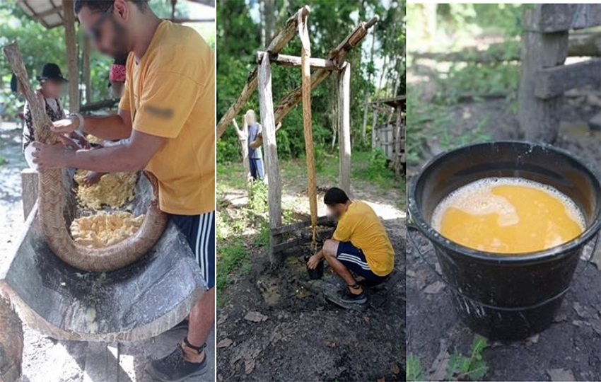 Essa etapa começa com o manuseio do utensílio culinário considerado o mais simbólico da cultura amazonense, o tipiti. Do tupi “tipi=expremer, ti+ sumo, líquido” (Pereira apud Maranhão, Bastos & Marchi, 2016, p.62).