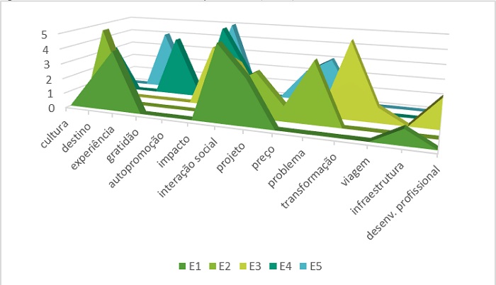 Os fatores que mais influenciam a recompra de viagens de volunturismo ou a intenção de retorno aos destinos visitados foram classificados pelos entrevistados. As intenções de retorno e recompra identificadas denotam que o primeiro fator de maior influência no processo de decisão se liga: ao impacto social, que segundo E4 se refere ao saldo proporcionado pela viagem, ou seja, “o resultado dela, o que ela ocasionou, seja para a pessoa, seja para o projeto”; ao impacto ou à intensidade da experiência (E5); à transformação pessoal (E3), às interações sociais com os locais, de modo geral, ou até mesmo a família que hospedou o volunturista (E1); e ao meio ambiente, beleza e riqueza natural do lugar visitado (E2).