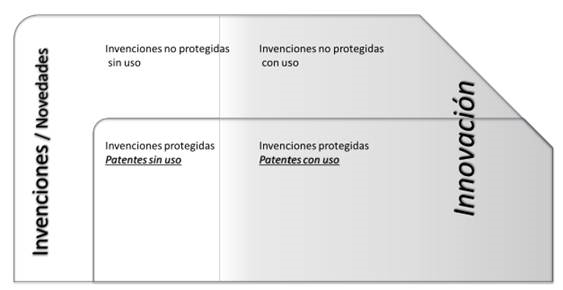 Sin embargo, es importante reconocer que no toda idea novedosa se convierte en patente, aunque sí puede llegar a representar una innovación; de la misma forma que no toda patente alcanza un nivel de apropiación o aprovechamiento tal que la convierta en una innovación tecnológica. En la Figura 1 se presenta un esquema en el que se explica esto.
