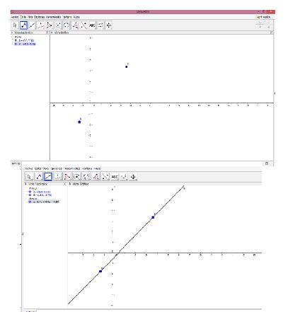 Virtual: En sala de computación de la institución se instaló en software GeoGebra que le sirve a los estudiantes como apoyo para el desarrollo de las clases presenciales, los investigadores a cargo que desarrollaron la temática a cargo donde se dio inicio a la primera actividad de la propuesta en la cual iban a conocer Geogebra y empezar a desarrollar los pasos prescritos en la actividad. Además de esto se proponen actividades que ayuden al afianzamiento de los conocimientos aprendidos articulados en la propuesta, en el desarrollo de la primera actividad después de finalizar la presentación del software, empezando la interacción (Fig 1).