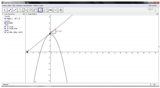 Calcularan la ecuación de la recta tangente en determinado punto con GeoGebra.