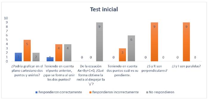 El objetivo de la prueba inicial consistió en determinar el estado de conocimiento en la cual se encuentra el estudiante, es decir, los conocimientos previos que maneja el estudiante en este caso sobre la tangente, la línea recta, sus propiedades, donde se aplica y que concepciones tienen y las dificultades que presentan de la temática