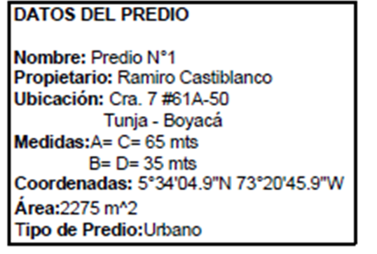En la Figura 5 se observa un ejemplo de los datos de un mapeo de la delimitación de un predio en el norte de Tunja.