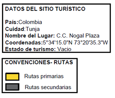 Por otra parte, se podrían realizar mapas para aquellas personas que quieran recorrer o conocer sitios turísticos de Tunja, donde se podría encontrar información como: país, cuidad, nombre del lugar, coordenadas, rutas, estado de turismo.