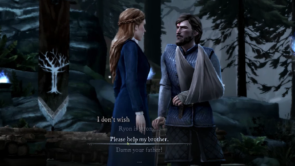 Considerando o uso do sistema de escolhas e consequências já recorrente por parte da Telltale, se faz necessário, por fim, discutir uma das principais críticas feitas ao estúdio nesse e em outros jogos de sua produção: muito é dito que se trata de uma “falsa liberdade”, porque, independentemente das decisões tomadas pelo jogador, os fatos principais da história irão continuar sendo os mesmos. Por exemplo: em uma das passagens do jogo, existem variadas possibilidades a respeito de como um dos protagonistas, Ethan, deve proceder para receber Ramsay Bolton; porém, quaisquer que sejam elas, o resultado final será sempre a morte de Ethan pelas mãos de Ramsay. No entanto, o que muitas dessas discussões normalmente ignoram é o fato de o jogo permitir que se escolha uma maneira própria de lidar com aquela situação, considerando todo o conhecimento adquirido ao longo do gameplay e também anteriormente, em outras variações da franquia. Ramsay é um personagem bastante conhecido pelo público de Game of Thrones por sua crueldade e comportamento imprevisível, e a possibilidade de enfrentá-lo diretamente é algo que possivelmente atrai a muitos dos fãs da obra. Tendo a oportunidade de estar frente a tal vilão, como o abordar? Ser diplomático, oferecer uma barganha ou o enfrentar? A possibilidade de ver a história se ajustar e acontecer de acordo com o seu posicionamento pessoal já é, por si só, uma possibilidade de imersão e interação com tal universo ficcional, independentemente de o resultado final ser sempre a morte de um dos personagens; em outras palavras, é como embarcar em um veículo com um destino definido, mas possuir a liberdade para escolher qual caminho tomar para chegar até lá.