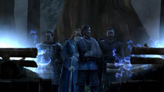 Esse modelo de jogo comumente recebe ainda acusações de se tratar mais de um “filme interativo” do que de um videogame de fato; acreditamos ser mais adequado tratá-lo, ao invés disso, como uma estratégia, ou um modo de uso desse suporte, para atender a objetivos específicos e que, assim como outros gêneros de jogos, agradará a uma parcela específica de consumidores (nesse caso, há uma delimitação de público-alvo bem explícita ao dialogar diretamente com os conteúdos introduzidos pela TV e oferecer um sistema de gameplay menos exigente a indivíduos não familiarizados com os controles). No caso do Game of Thrones da Telltale, a opção por incluir um tempo curto para tomada de decisões, bem como as inúmeras situações de quick time events, funcionam para produzir ritmo na experiência e oferecer momentos de quebra em relação às etapas de exploração e coleta de itens e informações, afastando, assim, o jogo de uma presumida “passividade”, presente na comparação com o ato de assistir a um filme (que, também, não é um ato “passivo”, mas essa já é outra discussão). E, também, sinalizando algumas questões relevantes a serem abordadas em pesquisas futuras, faz pensar sobre o potencial da materialidade desse suporte em provocar, por meio da performance, um efeito emocional no jogador e contribuir para a construção de sentido na narrativa também nesse nível. No videogame de Game of Thrones há um senso de urgência, de não poder nunca estar desatento, que marca a experiência ao longo do jogo e que, em certa medida, também insere o jogador numa atmosfera típica das intrigas e conspirações presentes nas tramas dessa franquia. Ou, em outras palavras, tal qual mencionado na série televisiva e reforçado no videogame: “no jogo dos tronos, ou você ganha, ou você morre”.