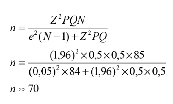 El tamaño de muestra calculado fue de 70 docentes. El método de levantamiento de información empleado fue la entrevista personal. El instrumento utilizado para tal efecto fue un cuestionario estructurado, el cual fue validado por expertos de la misma universidad.