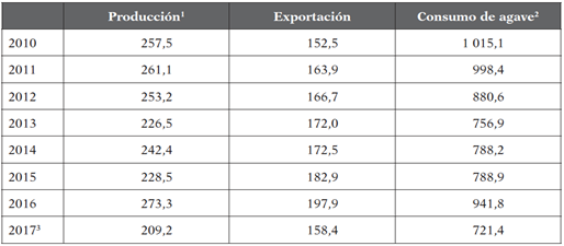 1. Fuerte dispersión de los cultivos (5 700 productores que cultivan 269 millones plantas de agave en 90 000 hectáreas) (Abaco, 2014) lo que aumenta los costes de transporte y de fabricación del tequila.