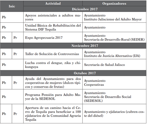De hecho, es muy intensa la actividad de emprendimiento social realizada por el municipio de Tequila, con el objetivo último de apoyar a las poblaciones económicamente más desfavorecidas y conseguir un desarrollo armónico de todo el territorio que beneficia al turismo, ya sea por la creación de cooperativas que producen y venden productos complementarios al tequila (por ejemplo, la miel de agave) o sustitutivos al mismo (por ejemplo, dulces típicos y distintos tipos de conservas de frutas) que son comprados por el turista (tabla 8).
