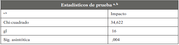 Tabla 4. Resultados de la prueba de Kruskal Wallis