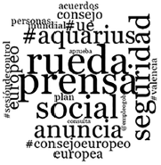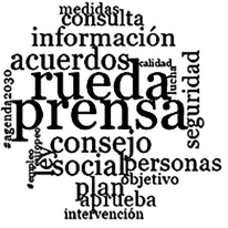 A pesar de que el mensaje con mayor reacción del público es el relacionado con el rescate del Aquarius, los términos más frecuentes en las publicaciones de junio son «rueda» y «prensa» (Figuras 4 y 5), que hacen referencia a las apariciones de miembros del gobierno ante los periodistas. Estos resultados denotan la tendencia a publicar mensajes de tipo informativo en Twitter, sobre todo de acuerdos o decisiones tomadas por el gobierno. Lo mismo ocurre el resto del año (Figura 5), en el que el protagonismo de otros términos importantes como #agenda2030 es menor (aparece en el 13% de los mensajes).