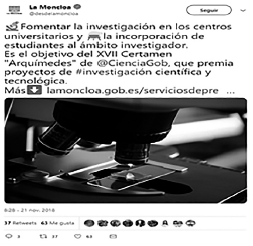Resumen: Las redes sociales son instrumentos de comunicación que facilitan la sensibilización y concienciación de los ciudadanos ante problemas sociales. A través de Twitter, los gobiernos pueden obtener información útil y tomar de decisiones para mejorar el bienestar de la comunidad y concienciar a los ciudadanos sobre el logro de los Objetivos de Desarrollo Sostenible (ODS). Este trabajo muestra cómo Twitter y el marketing social sirven como herramienta en la política económica y pretende conocer si en los mensajes publicados por la cuenta oficial del gobierno de España (@desdelamoncloa) se hablan sobre los ODS y el bienestar, además analiza el impacto de las publicaciones con contenido sobre dichos objetivos. Para ello se utiliza la metodología del análisis de contenido desde un doble enfoque, cualitativo y cuantitativo, examinando de forma descriptiva los mensajes publicados por @desdelamoncloa durante 2018, así como su relación con los ODS y el Indicador de Bienestar Sostenible. Los resultados reflejan que los ODS más comentados (los relacionados con la igualdad de género y las desigualdades) no son los que han obtenido un mayor impacto del público (trabajo y crecimiento económico), destacando los ODS incluidos en el elemento del Indicador de Bienestar Sostenible denominado «Bienestar, Economía y Sostenibilidad». Asimismo, el análisis cualitativo refleja que los mensajes publicados son de tipo informativo sobre actuaciones del gobierno y que el término «bienestar» aparece en un contexto donde se resalta los valores que representa España.