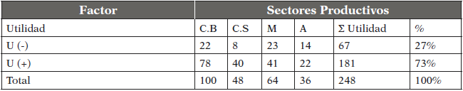 Según se evidencia en la Tabla 10, el 73% de los emprendimientos asesorados obtienen utilidad, mientras el 27% generan pérdida. Además, se puede observar con meridiana claridad que los sectores donde se concentra la mayor cantidad de emprendimientos son el de Comercio de Bienes y Manufactura.