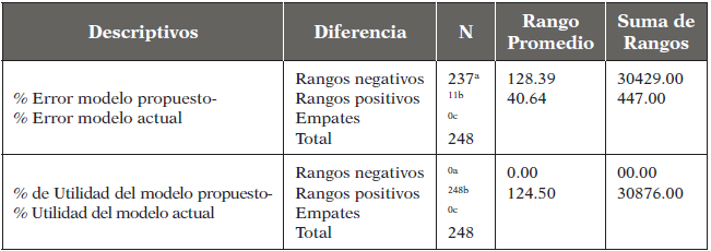 A continuación, en la Tabla 16, se presenta la hipótesis sujeta a verificación con la prueba de rangos de Wilcoxon para muestras reaccionadas. Ésta se utilizó para comparar dos mediciones de rangos (medianas), con el fin de determinar que la diferencia no se deba al azar.