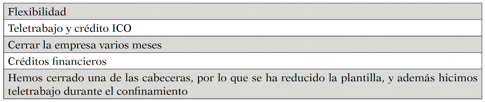 The study has been carried out in SMEs and self-employed workers in the Community of Aragon, mainly, but a small sample of those in Madrid has also been studied, as they are representative of what is happening in Spain. The aim of this work is to find out what measures have been adopted by these companies to face and weather the global crisis.