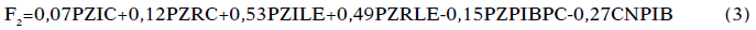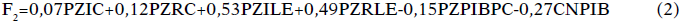 La matriz de coeficiente de componente muestra los estimadores insesgados de los factores F1 y F2 con base en las puntuaciones Z de cada variable sujeta a estudio, tal como se muestra en la Tabla 10 y las ecuaciones 1 y 2. Así mismo, en la Tabla 10, se observa la matriz de los componentes rotados la cual nos indica qué variables son explicadas en mayor cuantía por cada factor, en este caso, las variables relacionadas con la competitividad y el crecimiento económico son explicadas por el factor 1; mientras las variables relacionadas con la libertad económica son explicadas por el factor 2. Se procedió con la estimación de un modelo de regresión múltiple utilizando como variable dependiente el PIB per cápita a nivel, obteniendo los siguientes resultados en las siguientes tablas:
