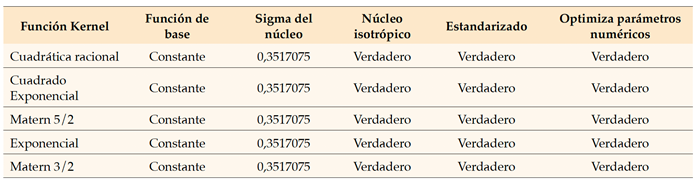 Debido a la función de la covarianza, hacer predicciones para nuevos puntos de prueba es sencillo, porque se trata de manipular matrices algebraicas. Sin embargo, en la aplicación procesal, puede ser necesario reconocer qué función de covarianza utilizar. Por supuesto, la confiabilidad de la regresión depende de qué tan bien se seleccionaron los parámetros requeridos por la función de covarianza elegida (Wang et al., 2023).