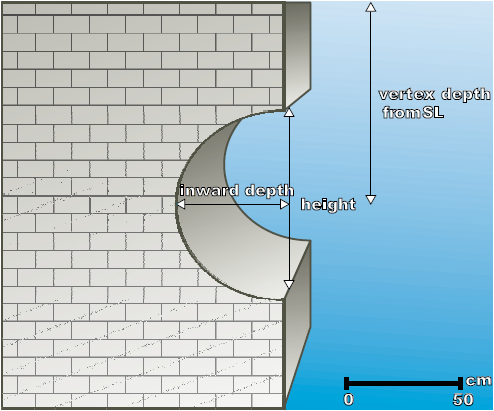 All coasts (Fig. 1) were systematically surveyed in detail by snorkeling and diving, using a boat in order to access all sites and establish the continuity of observations. Former sea-level positions were deduced from sea-level indicators, such as emerged and submerged tidal notches. Elements of notch geometry e.g. height, inward depth and vertex depth from sea level (Fig. 2) were measured according to Pirazzoli (1986) and Evelpidou et al. (2012b). Several measurements were performed at each location to improve their accuracy.