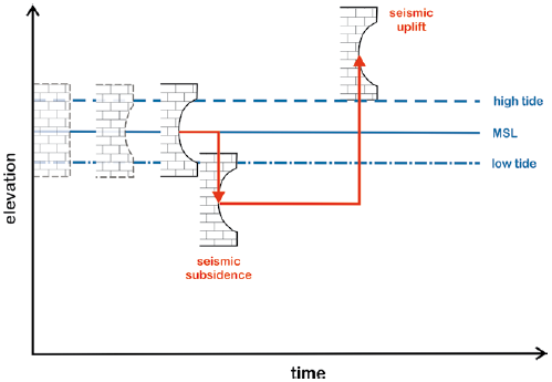 Pirazzoli, P.A., 2005. Marine erosion features and bioconstructions as indicators of tectonic movements, with special attention to the eastern Mediterranean area. Zeitschrift für Geomorphologie, Supplement band, 137, 71-77.