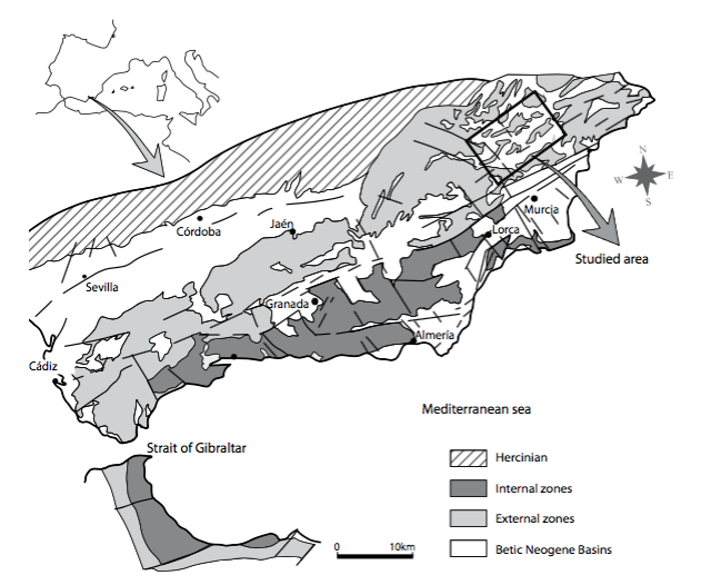 The origin of the Betic Cordillera in SE Iberia is related to the Neogene convergence of the Eurasian and African plate boundaries. Two major geological domains can be differentiated in this orogen: the Internal and External Zones. The Internal Zone is located adjacent to the Alborán Sea and mainly consists of metamorphic rocks. The External Zone comprises sediments deposited on the passive margin of Iberia (Fig. 1).