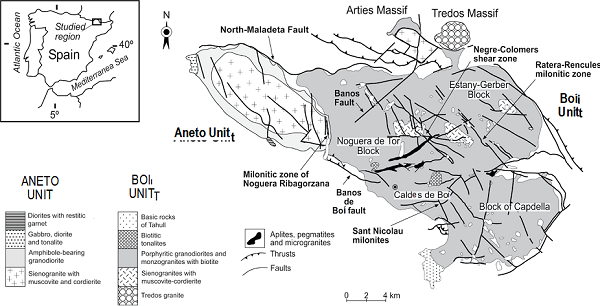 Arranz, E., 1997. Petrología del macizo granítico de La Maladeta (Huesca-Lérida): estructura, mineralogía, geoquímica y petrogénesis. Doctoral Thesis. Universidad de Zaragoza, 319pp.