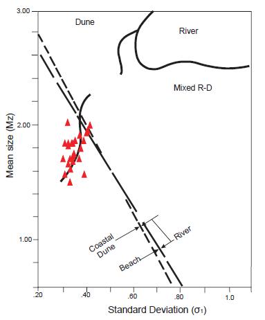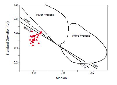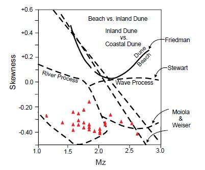 Friedman, G.M., 1961. Distinction between dune, beach and river sands from the textural characteristics. Journal of Sedimentary Petrology, 31, 514-529.