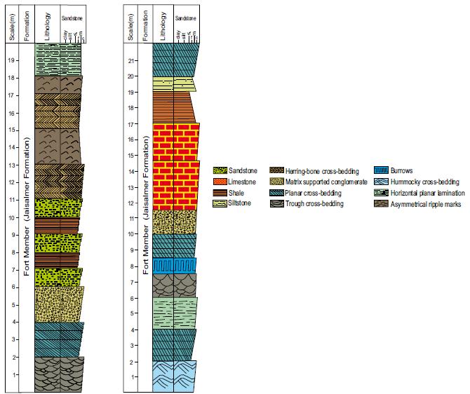 No detailed lithofacies and granulometric studies have been attempted so far in the Fort Member of the Jurassic Jaisalmer Formation. Lithofacies and granulometric studies are used to determine the environment of deposition, classify the siliciclastic sedimentary rocks and study the energy condition of the transporting medium and dominant mechanism of transportation. In order to interpret the sedimentary environments represented in this unit, lithofacies and granulometric studies of the sandstones, shales and limestones of the Fort Member of the Jaisalmer Formation were taken up in the present investigation.