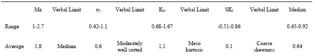 Friedman, G.M., 1967. Dynamic processes and statistical parameters compared for size frequency distribution of beach and river sands. Journal of Sedimentary Petrology, 37(2), 327-354.