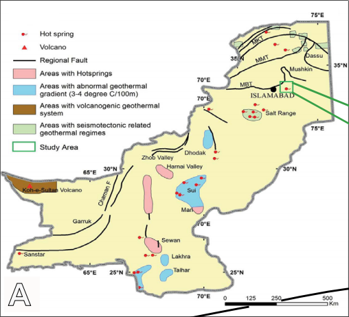 A) Map showing the geothermal manifestations in Pakistan along with major faults (after Zaigham et al., 2009).