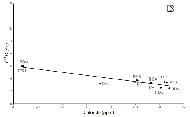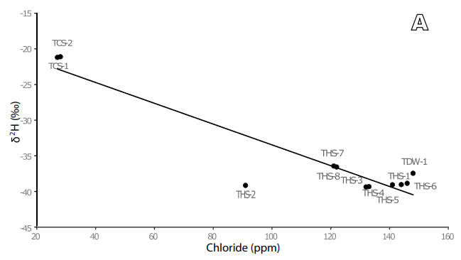 A) Relationship between chloride and δ2H in the thermal water and shallow groundwater.