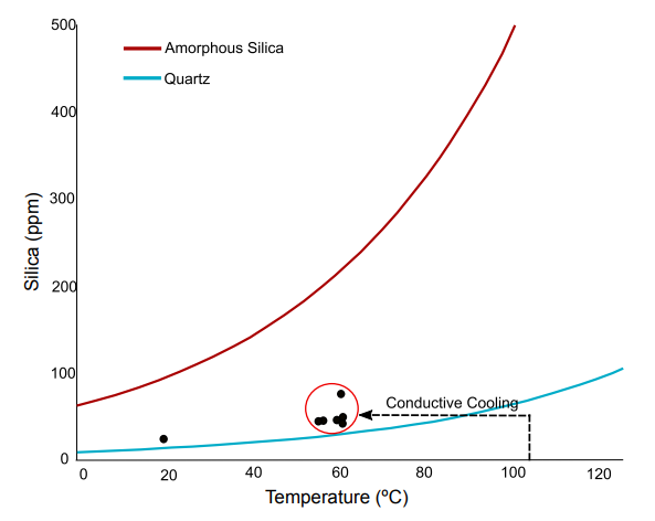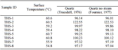 Silica geo-thermometer is based on the solubility of quartz in the solution, which is highly dependent upon the temperature of fluid. According to Fournier (1989), the assumptions of silica geo-thermometer are based upon equilibrium between fluid/quartz and lack of fluid mixing during the ascending of fluid to the surface.