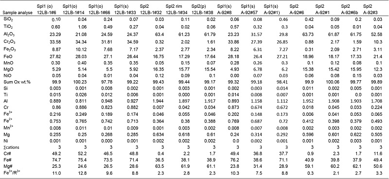 The other point in question is the origin of Spl2 compositions. Two hypotheses are envisaged: I) magmatic origin and II) hydrothermal subsolidus formation.