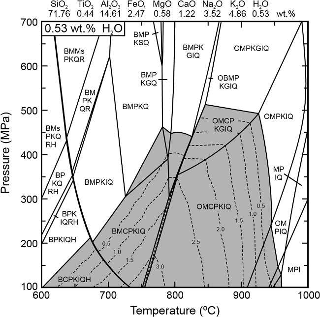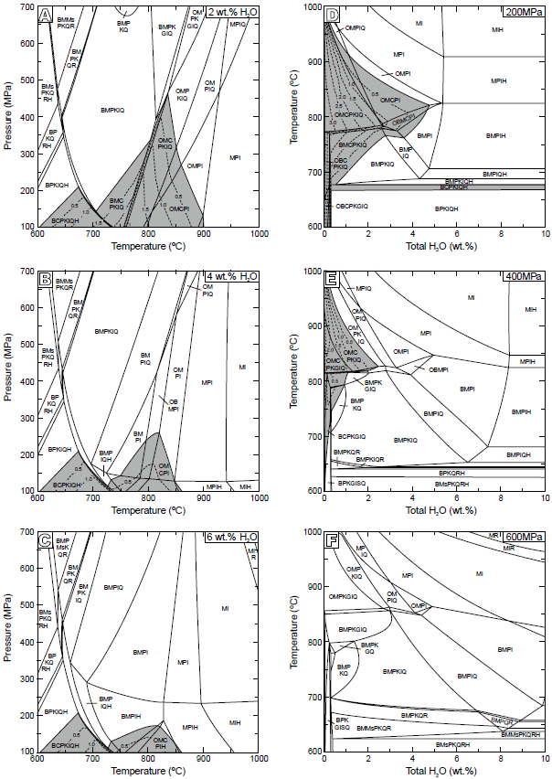 melt(HP) for the haplogranitic melt (Holland and Powell, 2001, improved by White et al., 2001 and White et al., 2007).