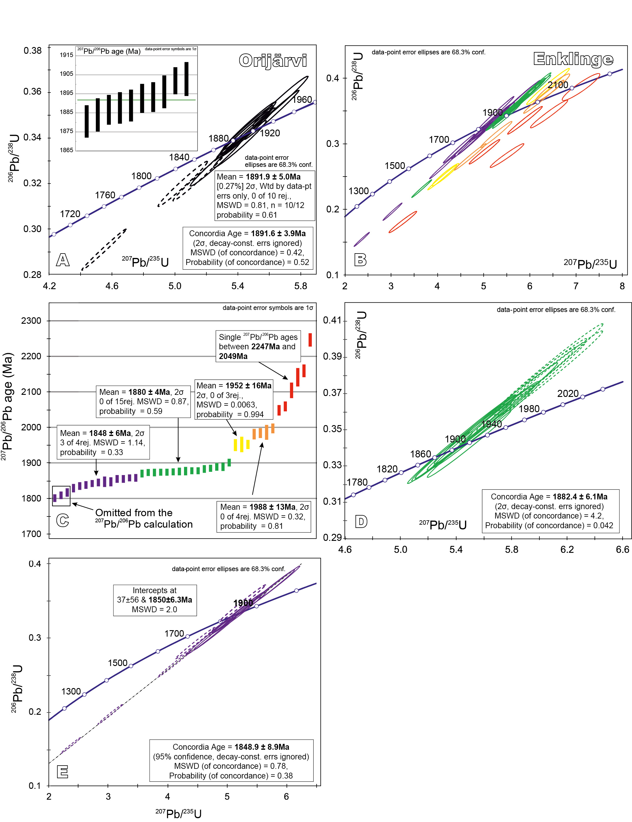 The crystallization age of 1892±4Ma for the Orijärvi granodiorite is supported by the previously obtained TIMS and SIMS ages of 1891±13Ma (Huhma, 1986) and