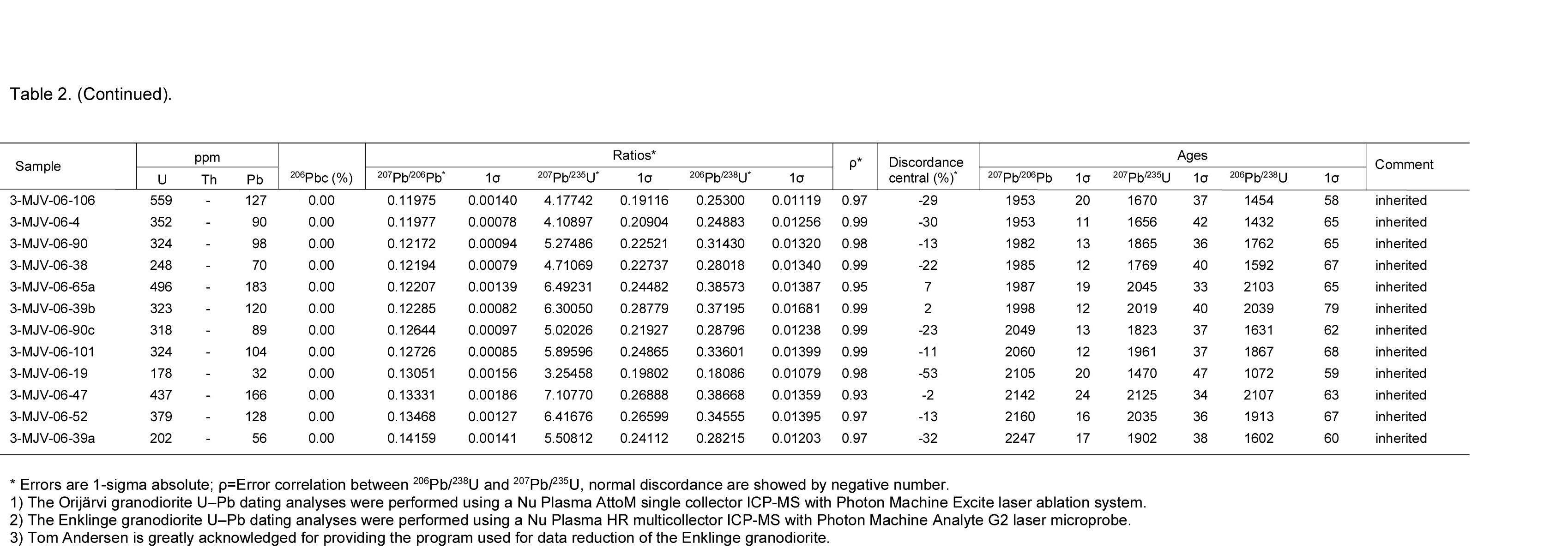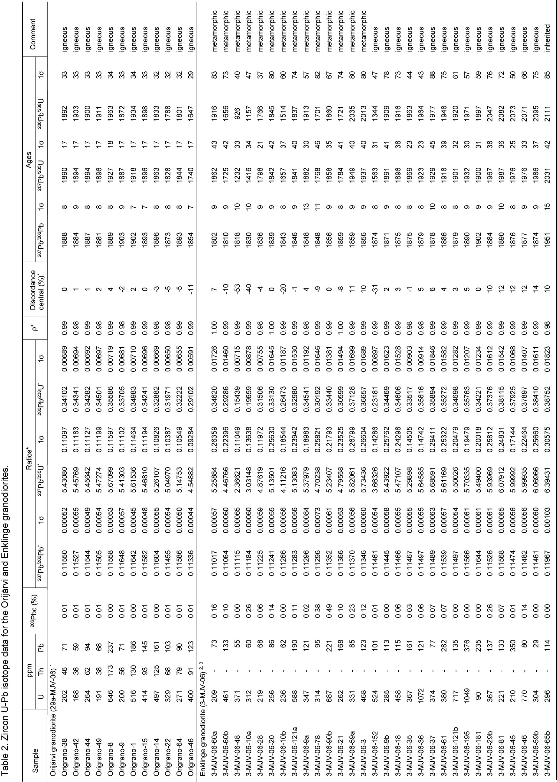 I. Zircon U-Pb isotope data for the Orijärvi and Enklinge granodiorites