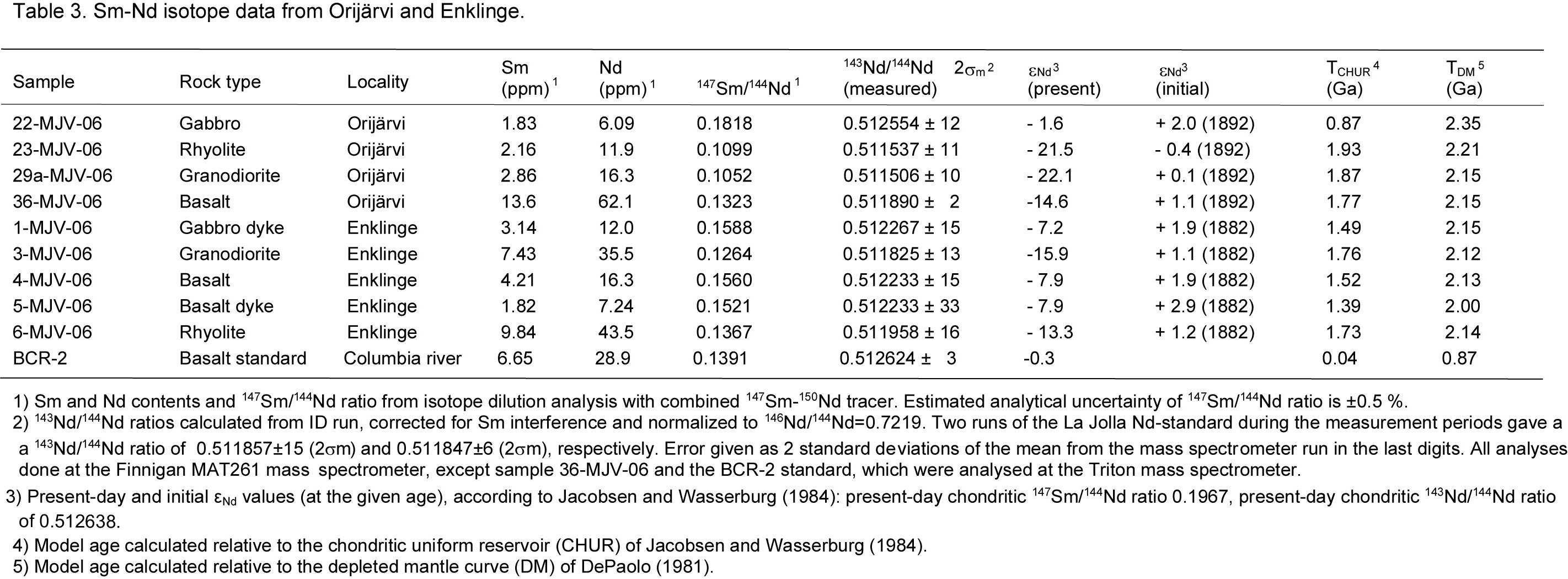 Sm-Nd isotope data from Orijärvi and Enklinge