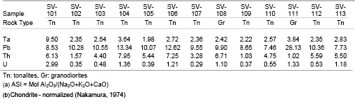 Tn: tonalites, Gr: granodiorites(a) ASI = Mol Al2O3/(Na2O+K2O+CaO)