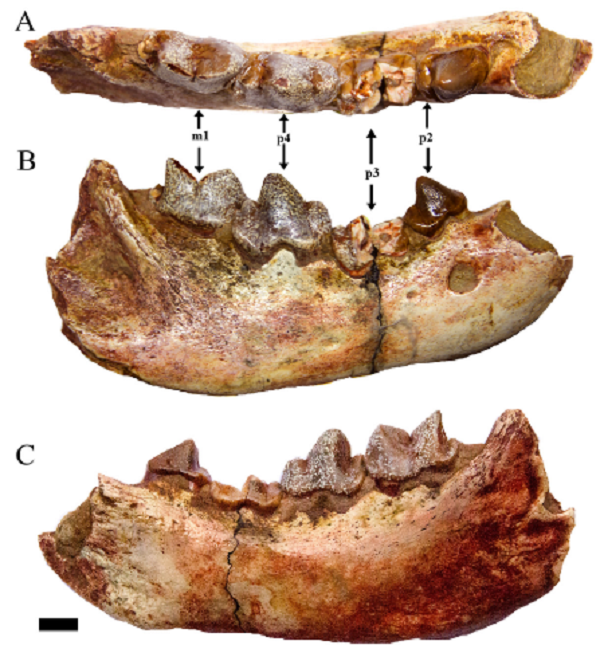 Material. PUPC 2016/16A is a fragmentary right mandible including p2 and m1 with the crown of p3 broken (Fig. 2). (Error 1: La referencia: Fig. 2 está ligada a un elemento que ya no existe)